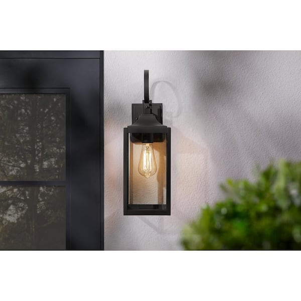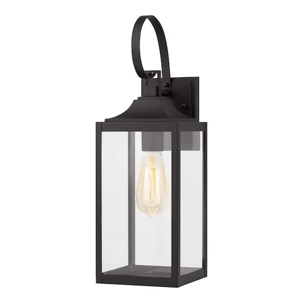 Havenridge 19 in. 1-Light Matte Black Hardwired Outdoor Wall Light Lantern Sconce with Clear Glass (1-Pack)