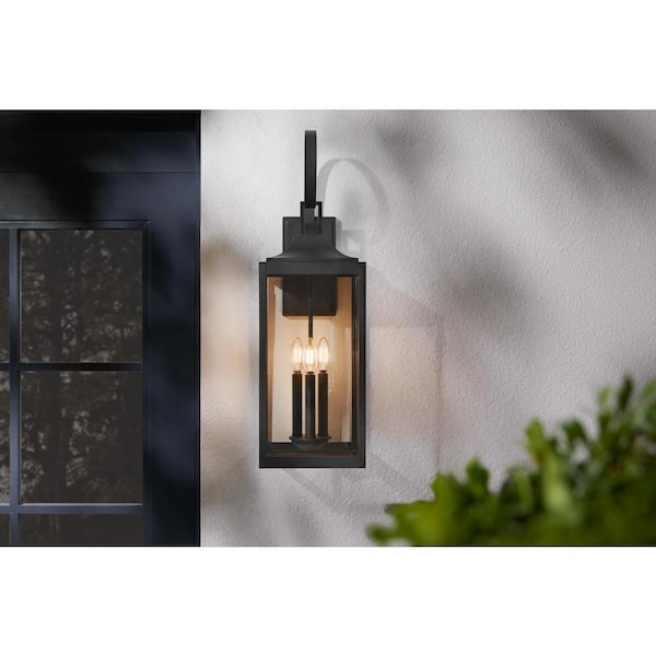 Havenridge 27.8 in. 3-Light Matte Black Hardwired Outdoor Wall Light Lantern Sconce with Clear Glass (1-Pack)
