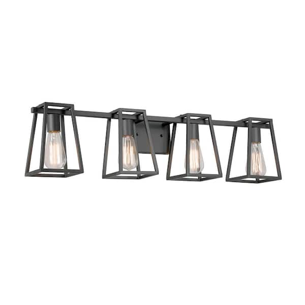 Hazel Heights 33.62 in. 4-Light Black Rustic Farmhouse Bathroom Vanity Light
