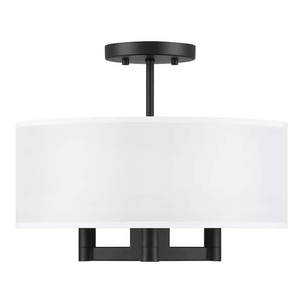 Hiddenbrook 15 in. 3-Light Matte Black Semi-Flush Mount with White Fabric Shade
