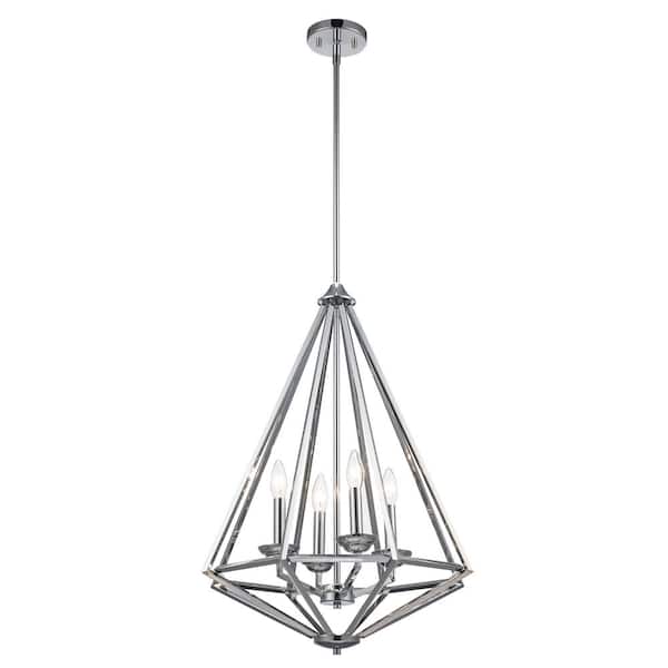 Hubley 4-Light Triangular Polished Chrome Pendant Light Fixture with Metal Cage Shade