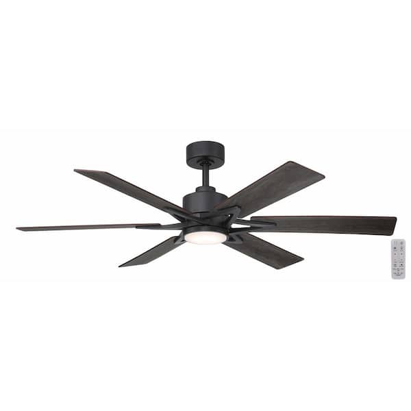 Intervale 56 in. Indoor/Outdoor Matte Black Windmill Ceiling Fan with Adjustable White LED with Remote Included