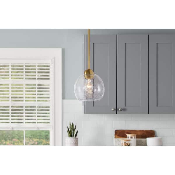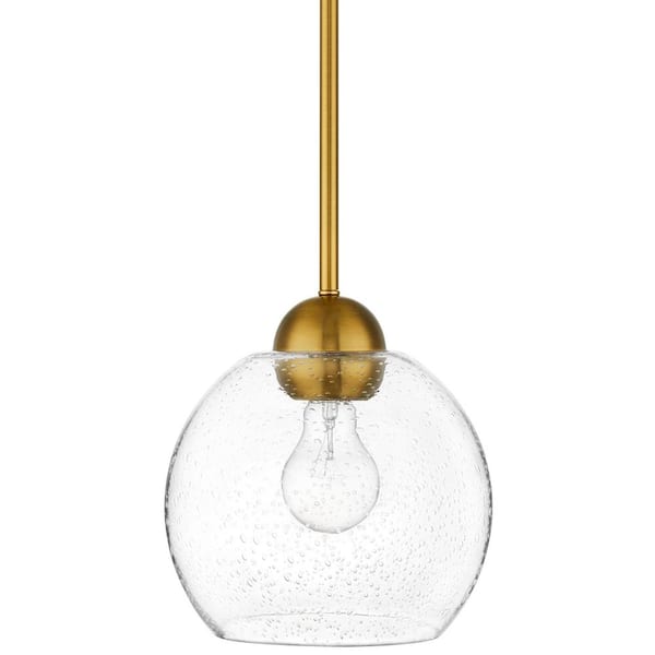Jill 1-Light Gold Globe Pendant Light with Clear Seeded Glass Shade
