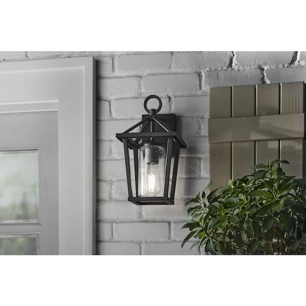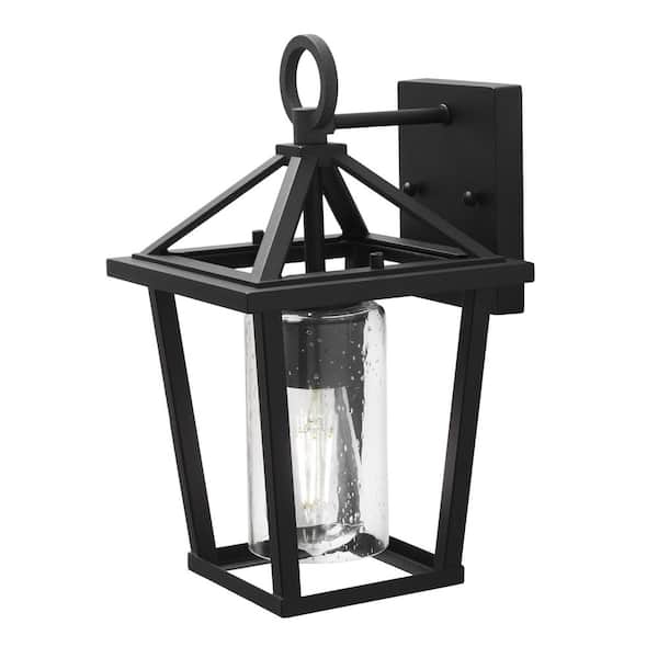 Jill 16 in. 1-Light Textured Black and Weathered Zinc Hardwired Outdoor Wall Sconce Light with Clear Seedy Glass