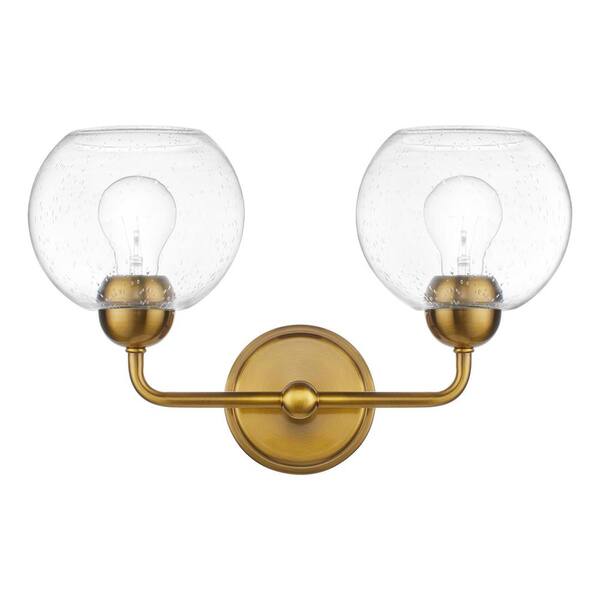 Jill 16 in. 2-Light Gold Vanity Light with Seeded Glass Shade