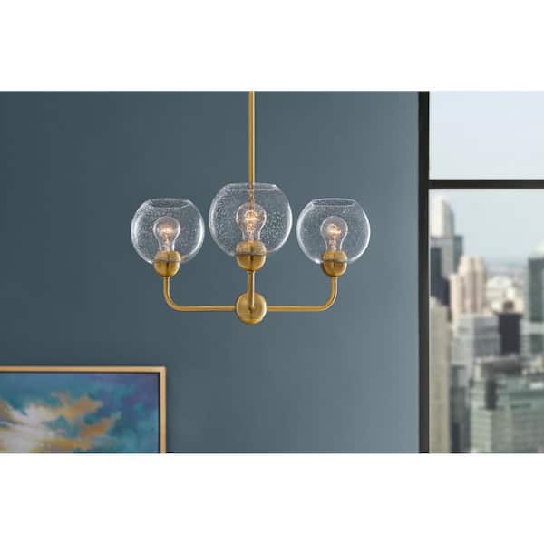 Jill 3-Light Gold Chandelier with Clear Seeded Glass Shade