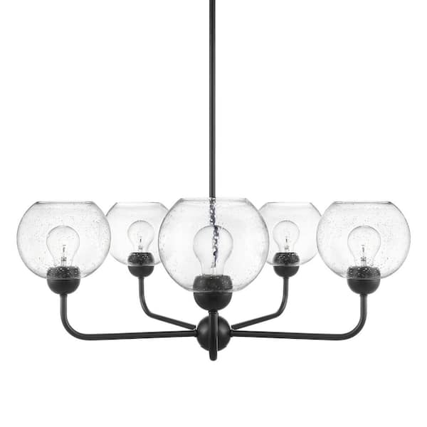 Jill 5-Light Black Chandelier with Clear Seeded Glass Shade