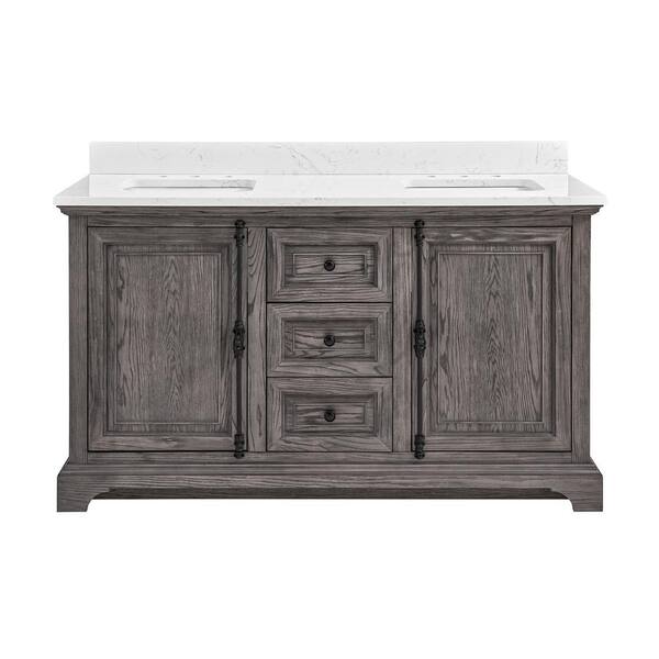 Joslyn 60 in. W x 22 in. D Double Vanity in Cashmere with Engineered Vanity Top in Carrara Marble with White Sinks