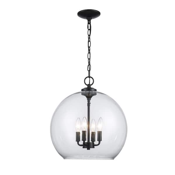 Kingsley 16 in. 4-Light Matte Black Pendant Light Fixture with Clear Glass Shade