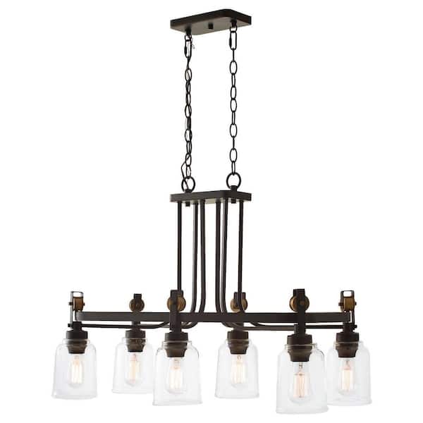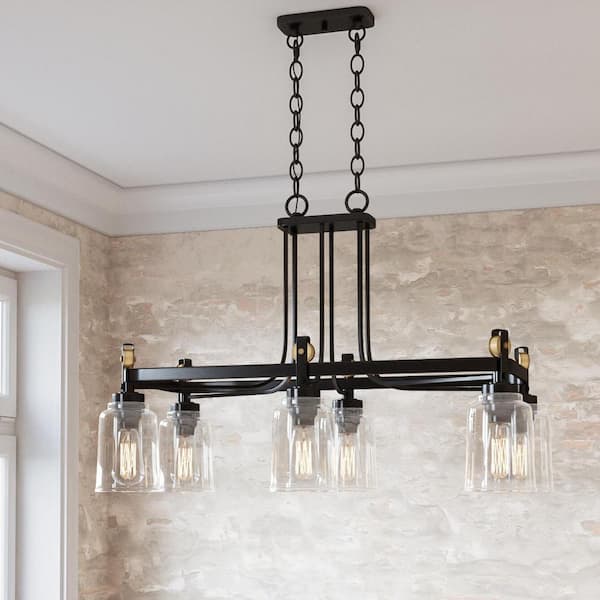 Knollwood 32 in. 6-Light Black Bronze with Brass Accents Industrial Round Chandelier for Kitchens Bulbs Included