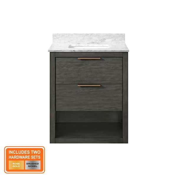 Kortine 30 in. Single Sink Black Oak Bath Vanity with White Natural Carrara Top (Assembled)