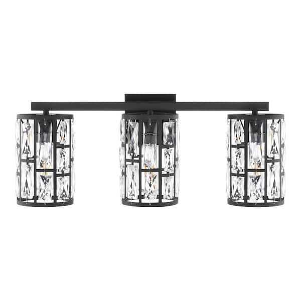 Kristella 24 in. 3-Light Black Vanity Light with Crystals