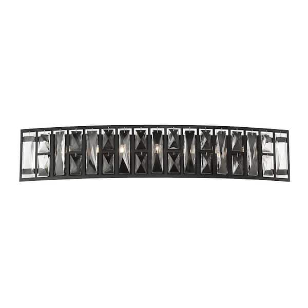 Kristella 29.5 in. 7-Light Matte Black Vanity Light with Clear Crystal Shade