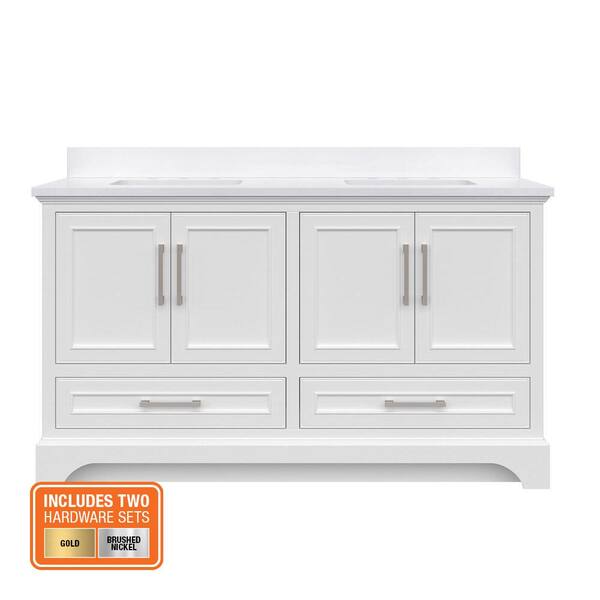 Lareda 60 in. W x 22 in. D x 35 in. H Double Sink Freestanding Bath Vanity in White with White Engineered Stone Top