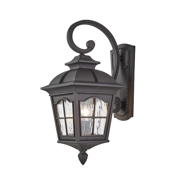 • Black outdoor wall lantern is weather resistant