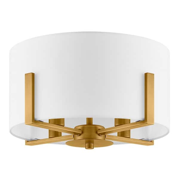Manhattan 4-Light Aged Brass Semi Flush Mount with White Drum Shade