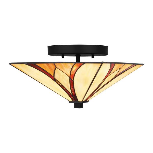 Margrave 12 in. 2-Light Matte Black Semi-Flush Mount with Tiffany Glass Shade