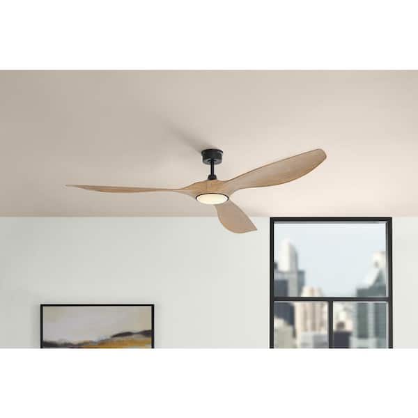 Marlon 84 in. Integrated LED Indoor Natural Iron Ceiling Fan with Greige Oak Blades and Remote Control