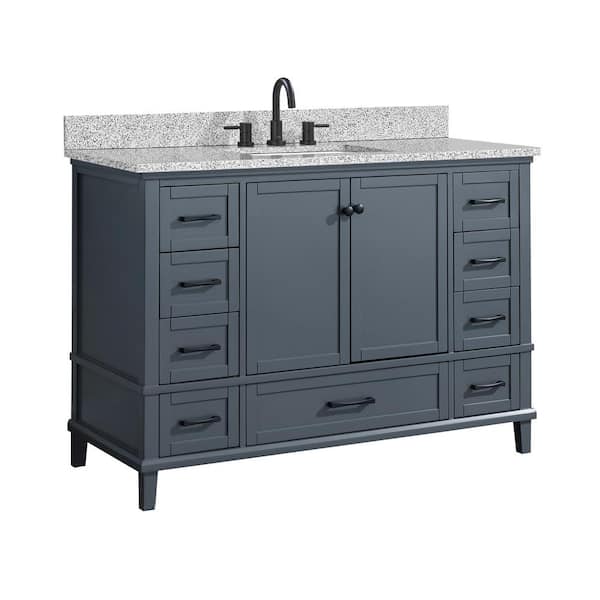 Merryfield 49 in. Single Sink Dark Blue-Gray Bath Vanity with Gray Granite Top (Assembled)