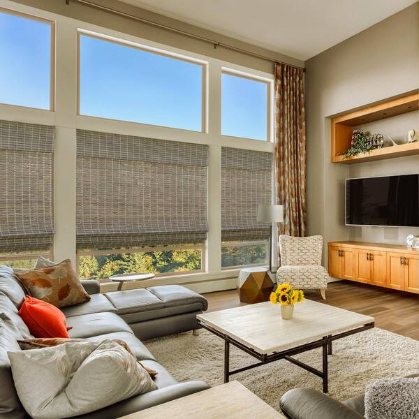 Modern Farmhouse Cut-to-Size Driftwood Flat-Weave Cordless Light-Filtering Bamboo Shade - 47 in. W x 72 in. L