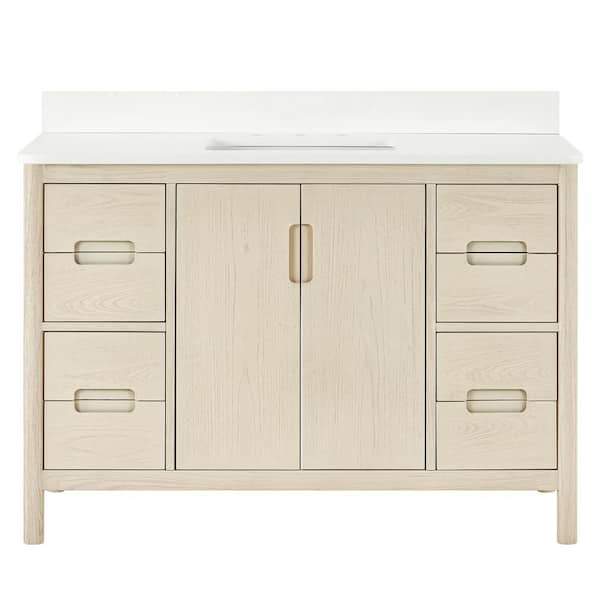 Montrose 49 in. Single Sink Natural Elm Bath Vanity with White Quartz Top (Assembled)