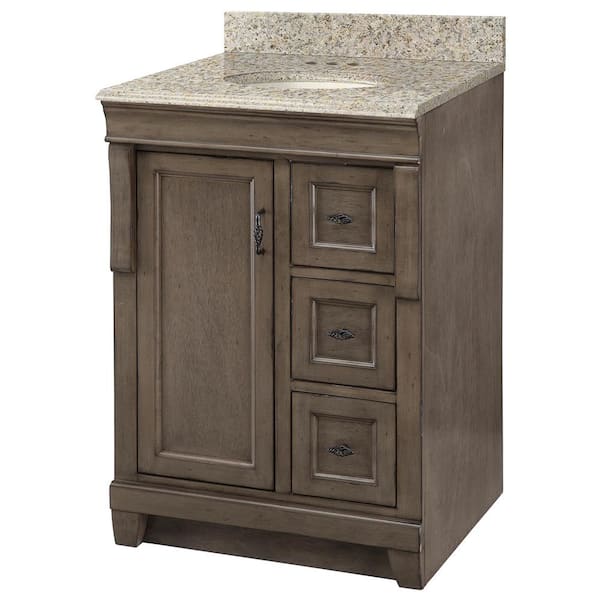 Naples 25 in. W x 22 in. D x 35 in. H Single Sink Freestanding Bath Vanity in Distressed Gray with Beige Granite Top