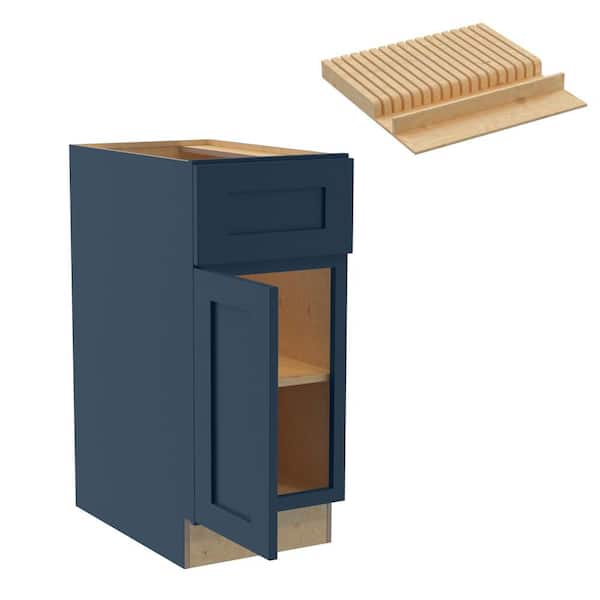 Newport 15 in. W x 24 in. D x 34.5 in. H Assembled Plywood Base Kitchen Cabinet in Mythic Blue with Knife Block LH