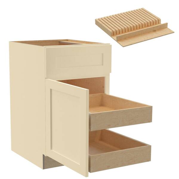 Newport 21 in. W x 24 in. D x 34.5 in. H Assembled Plywood Base Kitchen Cabinet in Blended Cream with 2ROT Knife Block L
