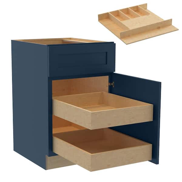 Newport 21 in. W x 24 in. D x 34.5 in. H Assembled Plywood Base Kitchen Cabinet in Mythic Blue with 2ROT Cutlery RH