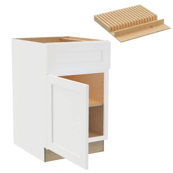 Newport 21 in. W x 24 in. D x 34.5 in. H Assembled Plywood Base Kitchen Cabinet in Pacific White with Knife Block LH