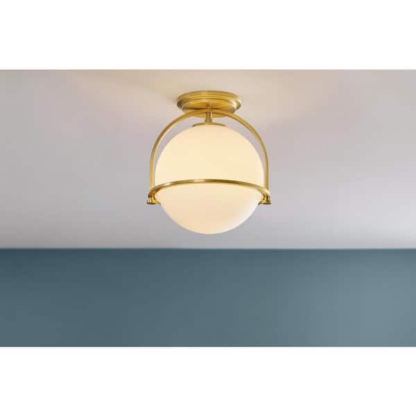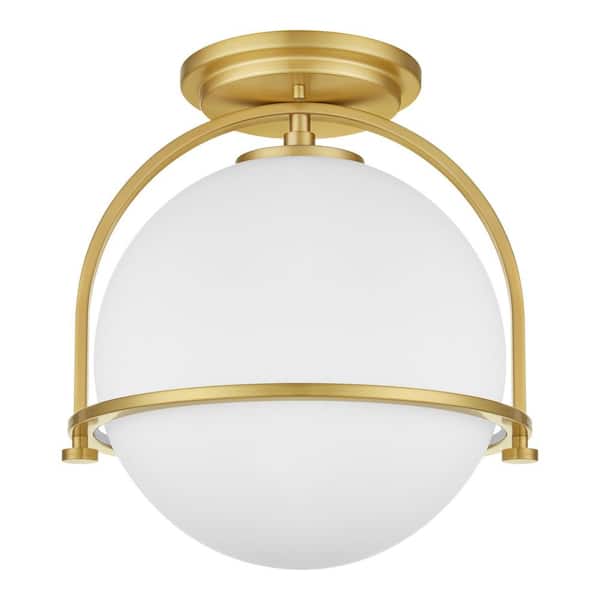 Owens 11.25 in. 1-Light Gold Semi-Flush Mount Ceiling Light Fixture with White Glass Globe Shade