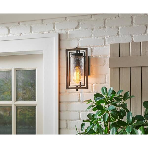 Palermo Grove 12.5 in. 1-Light Hardwired Gilded Iron Outdoor Wall Light Lantern Sconce with Incandescent Bulb