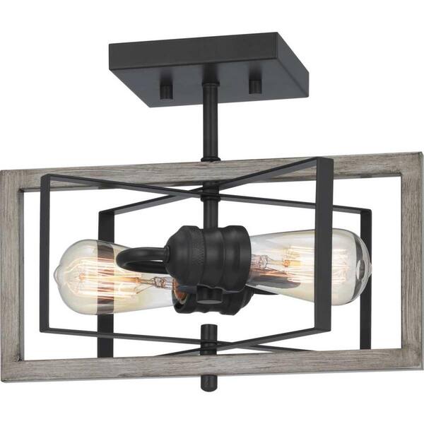 Palermo Grove 2-Light Graphite Semi-Flush Mount, Farmhouse Ceiling Light with Bleached Oak Accents