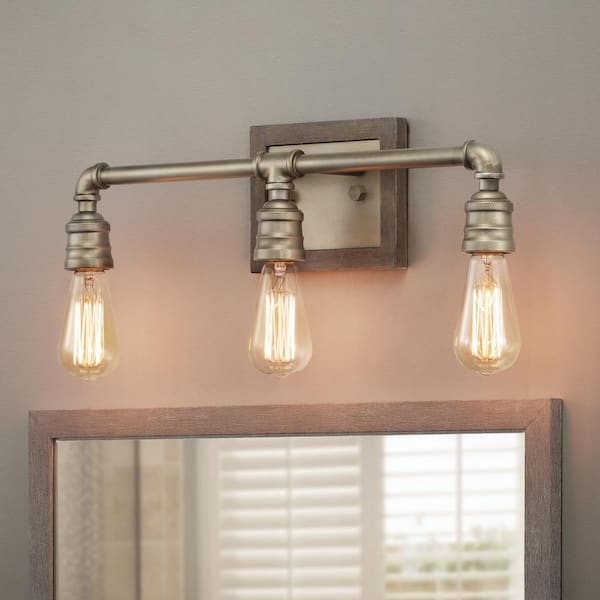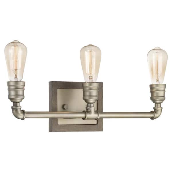 Palermo Grove 3-light Antique Nickel Vanity Light with Painted Weathered Gray Wood Accents