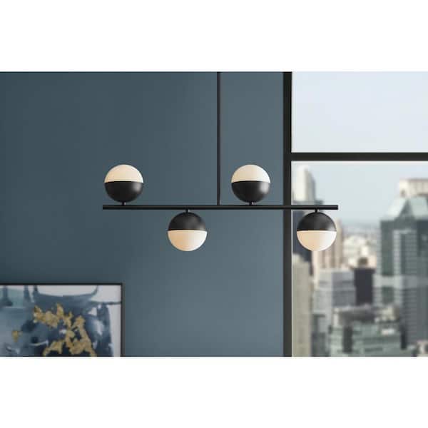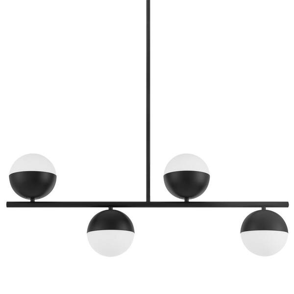Palla 4-Light Black Globe Linear Pendant Light with Frosted Glass Shade