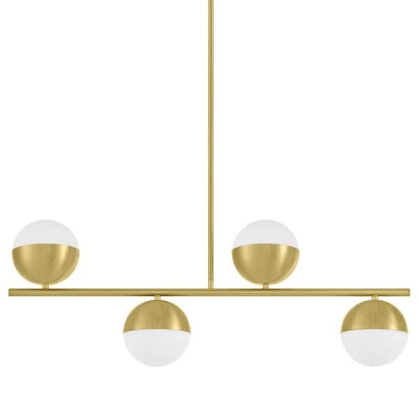 Palla 4-Light Gold Globe Linear Pendant Light with Frosted Glass Shade