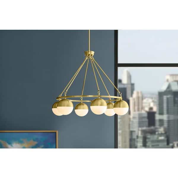 Palla 6-Light Gold Globe Chandelier with Frosted Glass Shade