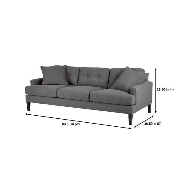 Pembrook Cambric Charcoal Gray Straight Standard Sofa with Tufting for 3 (86.5 in. W x 33.5 in. H)