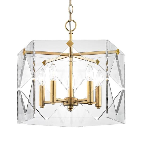 Pentos 5-Light Aged Brass Acrylic Chandelier