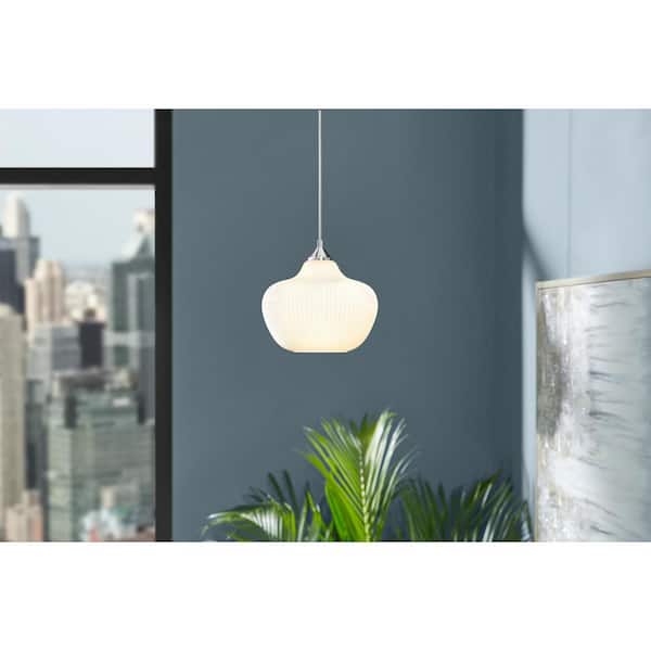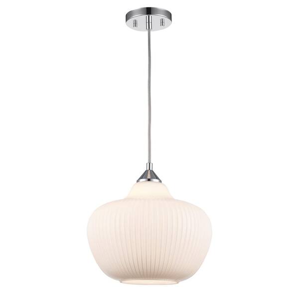Pompton 1-light Polished Chrome Pendant Light Fixture with White Ribbed Glass Globe Shade