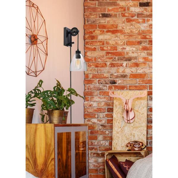 Pulley 1-Light Oil Rubbed Bronze Plug-in Wall Sconce