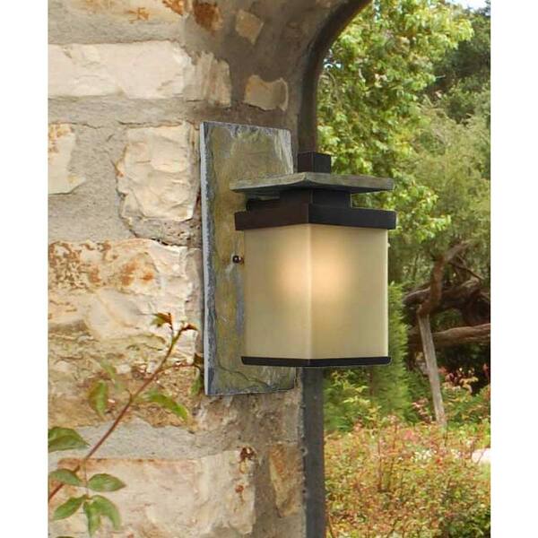 Quarry 1-Light Bronze and Natural Slate Outdoor Wall Lantern Sconce