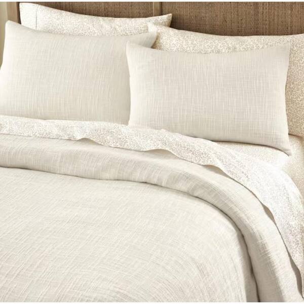Quinn 3-Piece Ivory Cream Woven Textured Cotton Full/Queen Duvet Cover Set