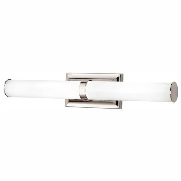 Rolande 100-Watt Equivalent Polished Nickel LED Vanity Light with Tube Etched Glass