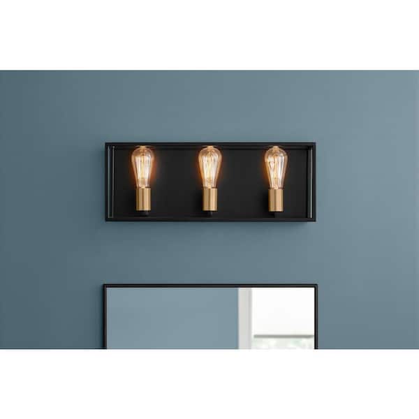 Rollins 3-Lights Black 2-Tone Vanity Light