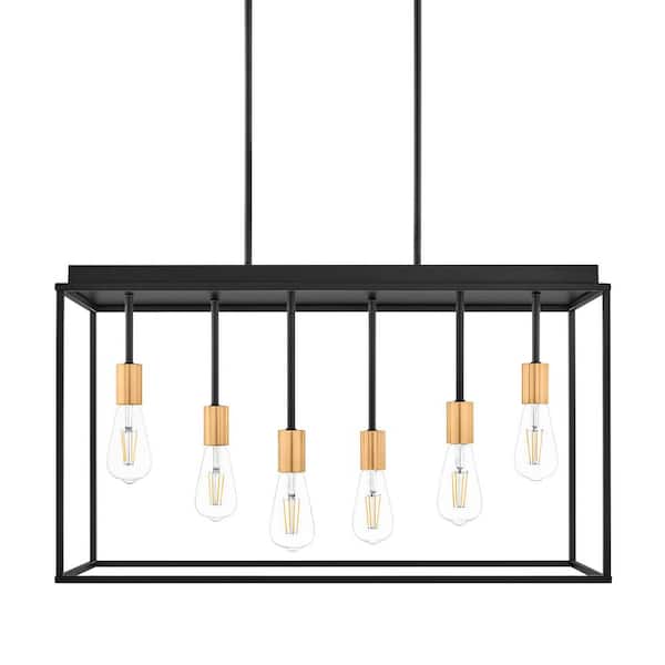 Rollins 6-Light Black and Brass 2-Tone Cage Pendant Light