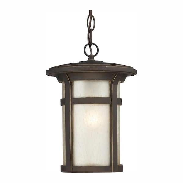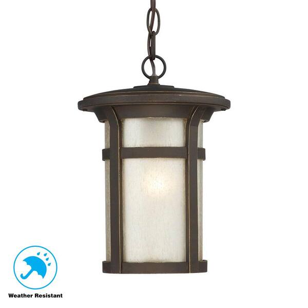 Round Craftsman 1-Light Dark Rubbed Bronze Outdoor Hanging Lantern
