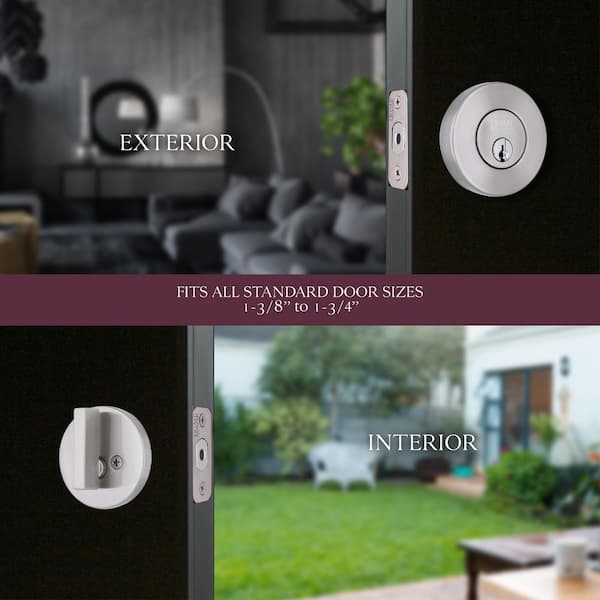 Round Satin Nickel Single Cylinder Deadbolt Featuring Dual Keyway