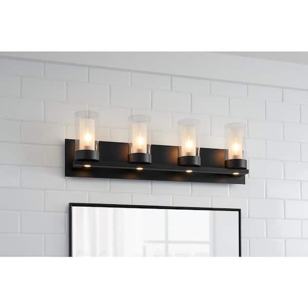 Samantha 4-Light Black Mounting Deck LED Integrated Bathroom Vanity Light Bar