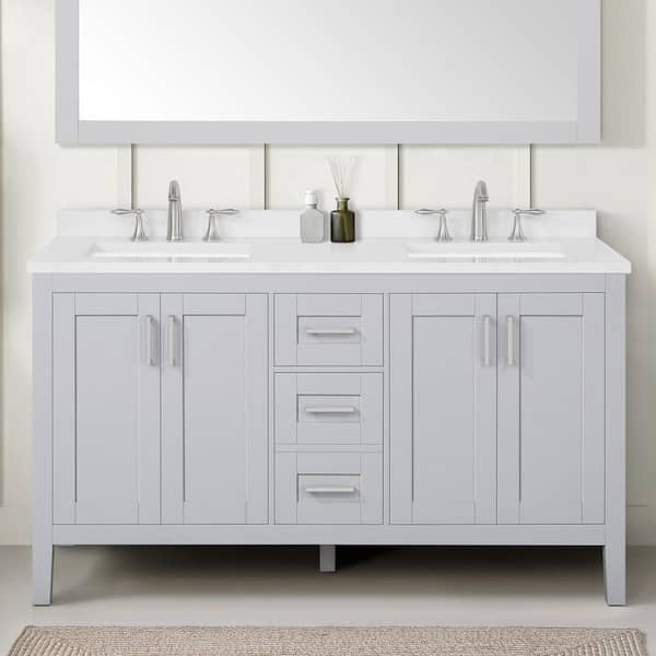 Sepal 60 in. Double Sink Dove Gray Bath Vanity with White Engineered Marble Top (Assembled)